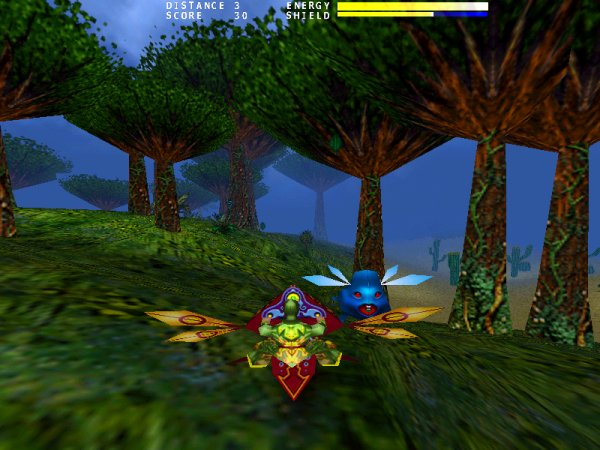Mamy do dyspozycji mały skuter i latamy nim w trójwymiarowym świecie pełnym stworków. Stworki należy zwalczać (strzelamy do nich) i samemu na nie uważać. Fajna grafika ale dość dziwny sposób sterowania skuterem.